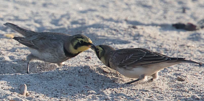 | 2 Ohrenlerchen bei rätselhafter Interaktion |