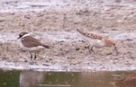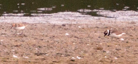 Zwerg-Strandläufer mit Fluss-Regenpfeifer |